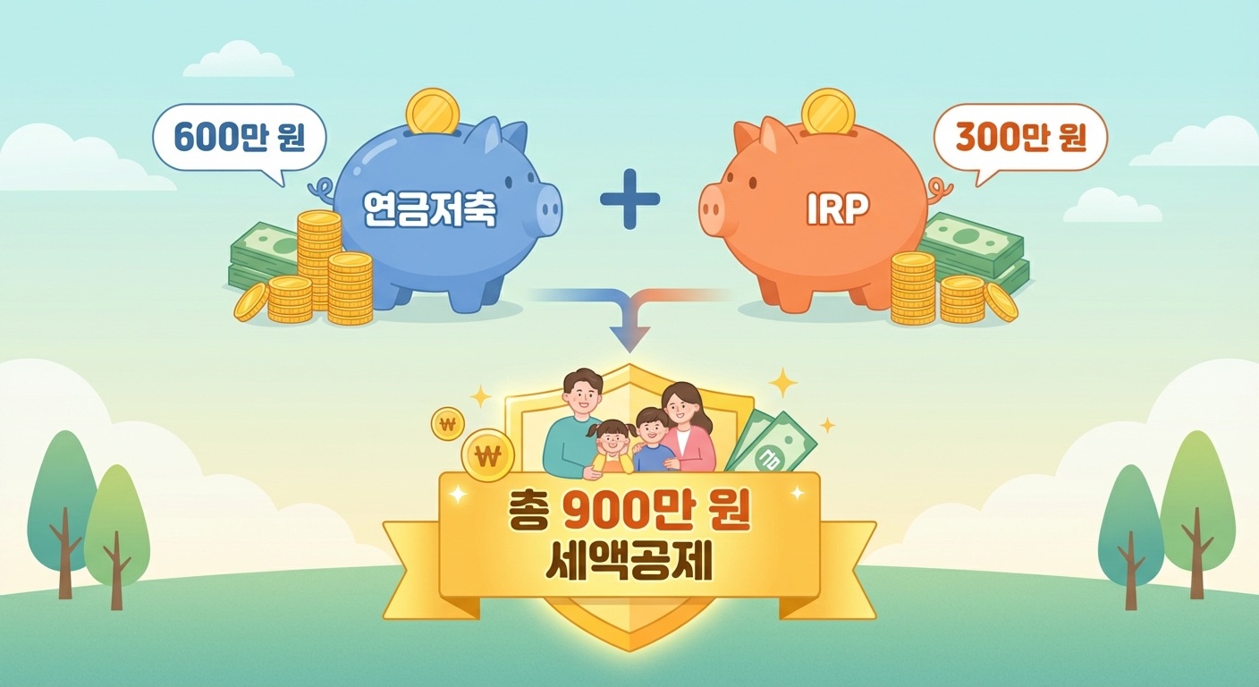 ✔️ 연금저축 600만 원 + IRP 300만 원 → 세액공제 한도 900만 원 풀활용