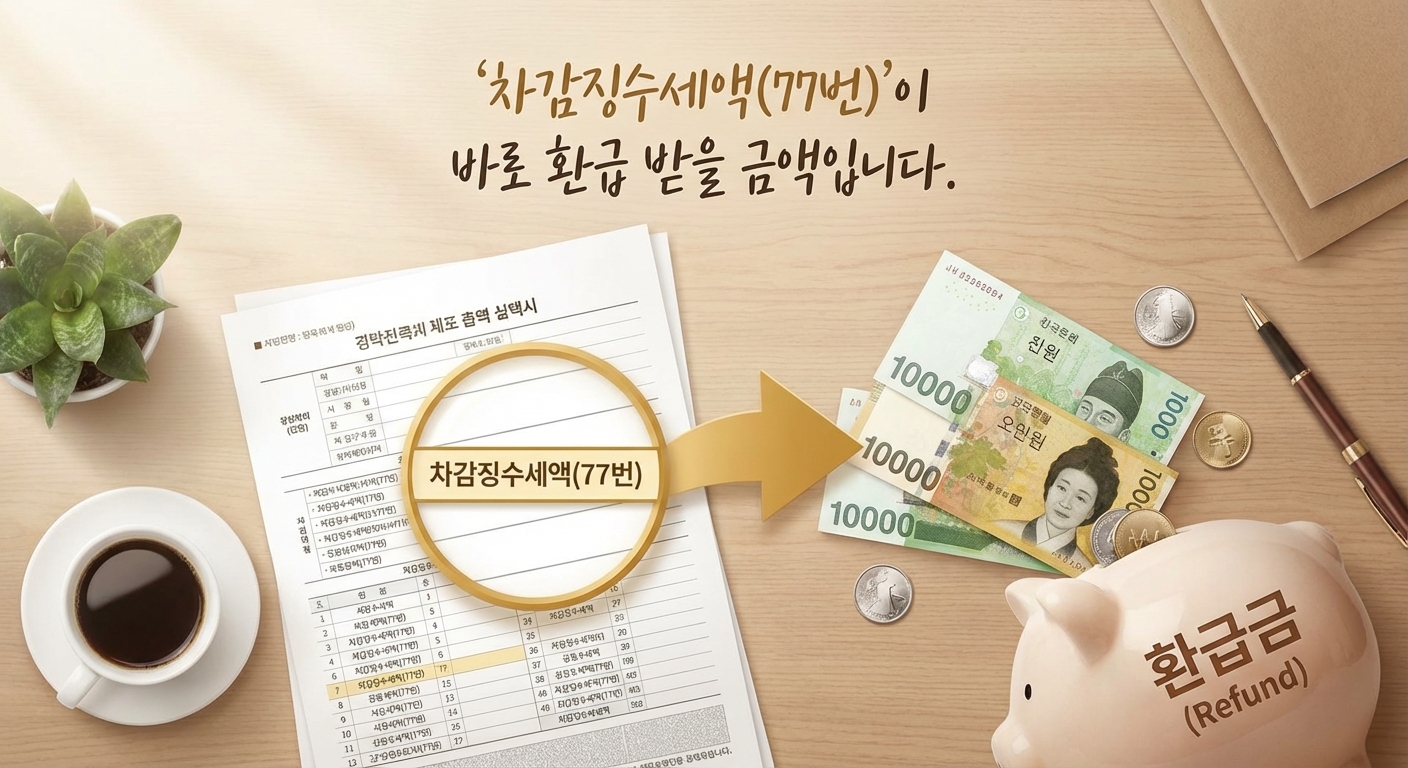 여기서 '차감징수세액(77번)'이 바로 환급 받을 금액입니다.