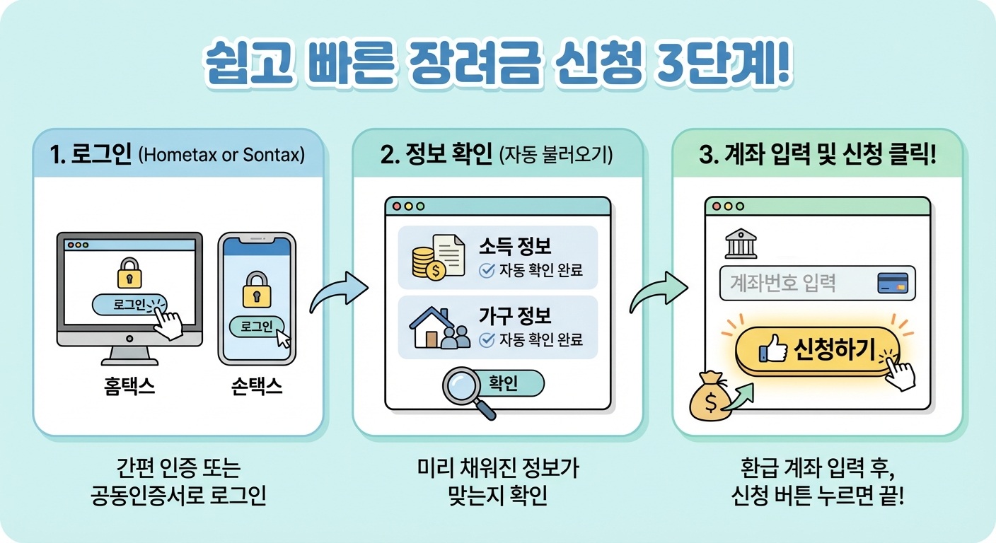 근로장려금은 사전 동의만 해두면 자동 신청 시스템으로 2년간 편하게 연속 신청할 수 있어요.
