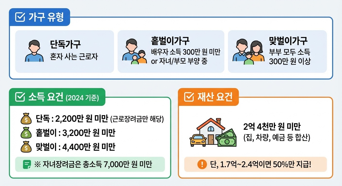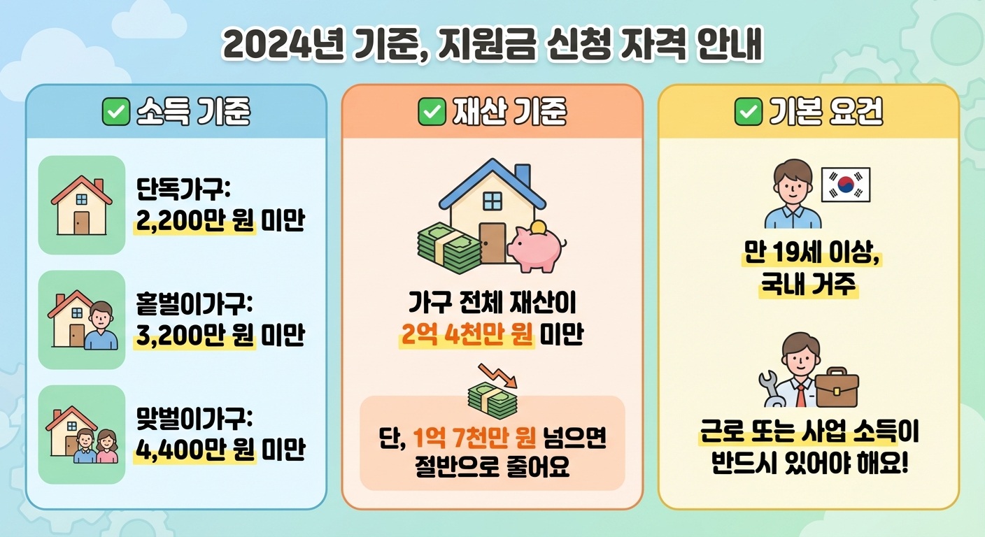 소득 조건을 충족해도 자산 기준을 넘으면 지급 제외될 수 있어요.